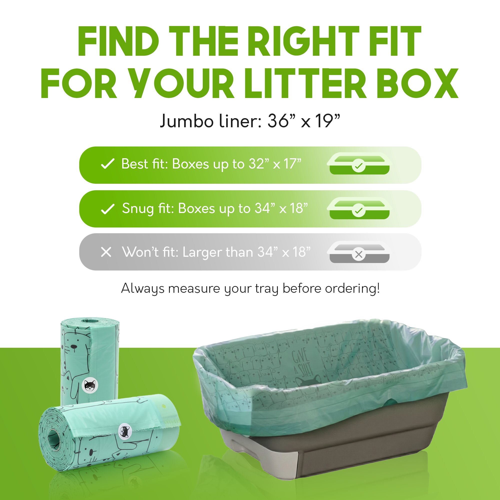 📐 JUMBO FIT, ZERO GUESSING - 36" x 19". Built for jumbo and extra-large litter boxes. Know exactly what you're getting before it arrives.