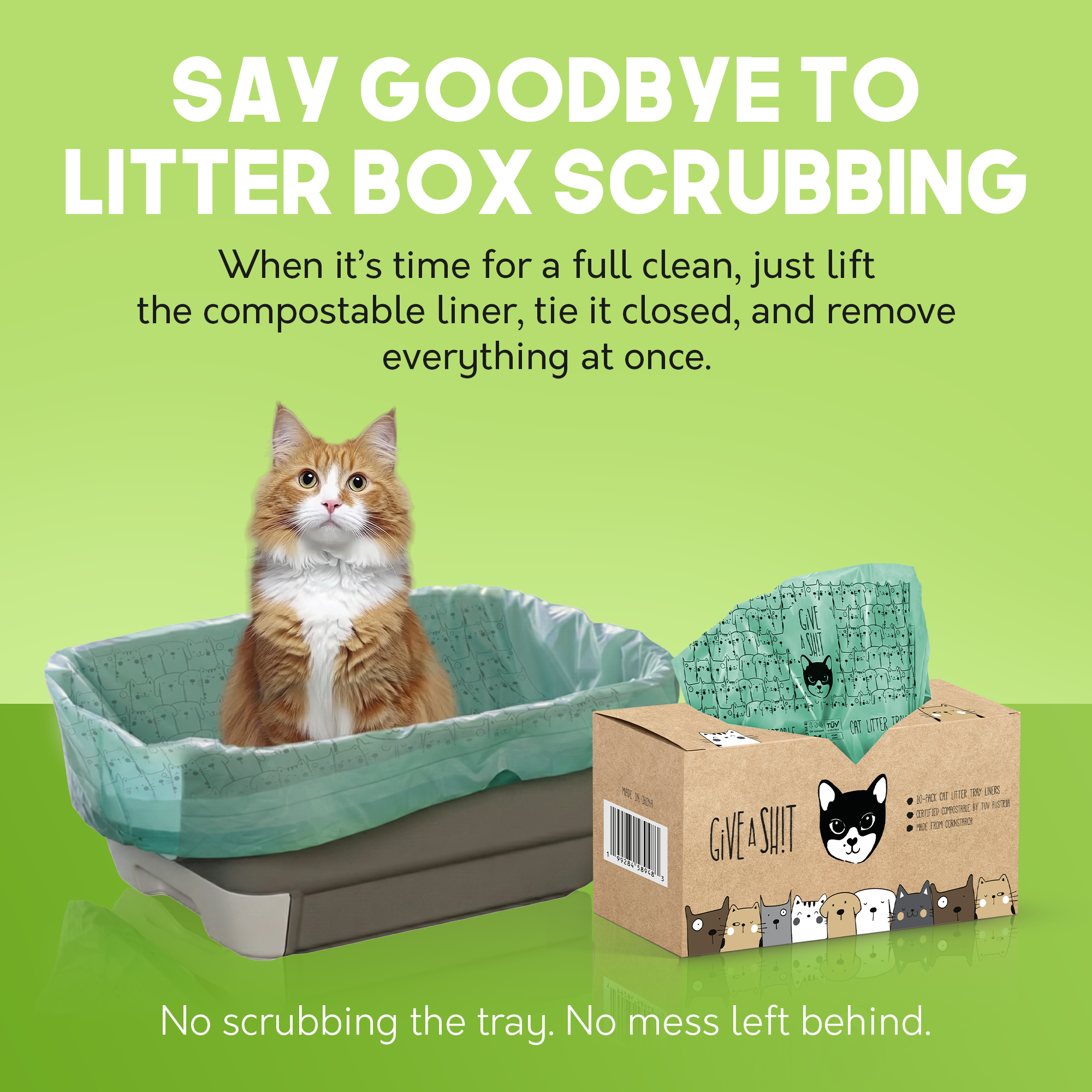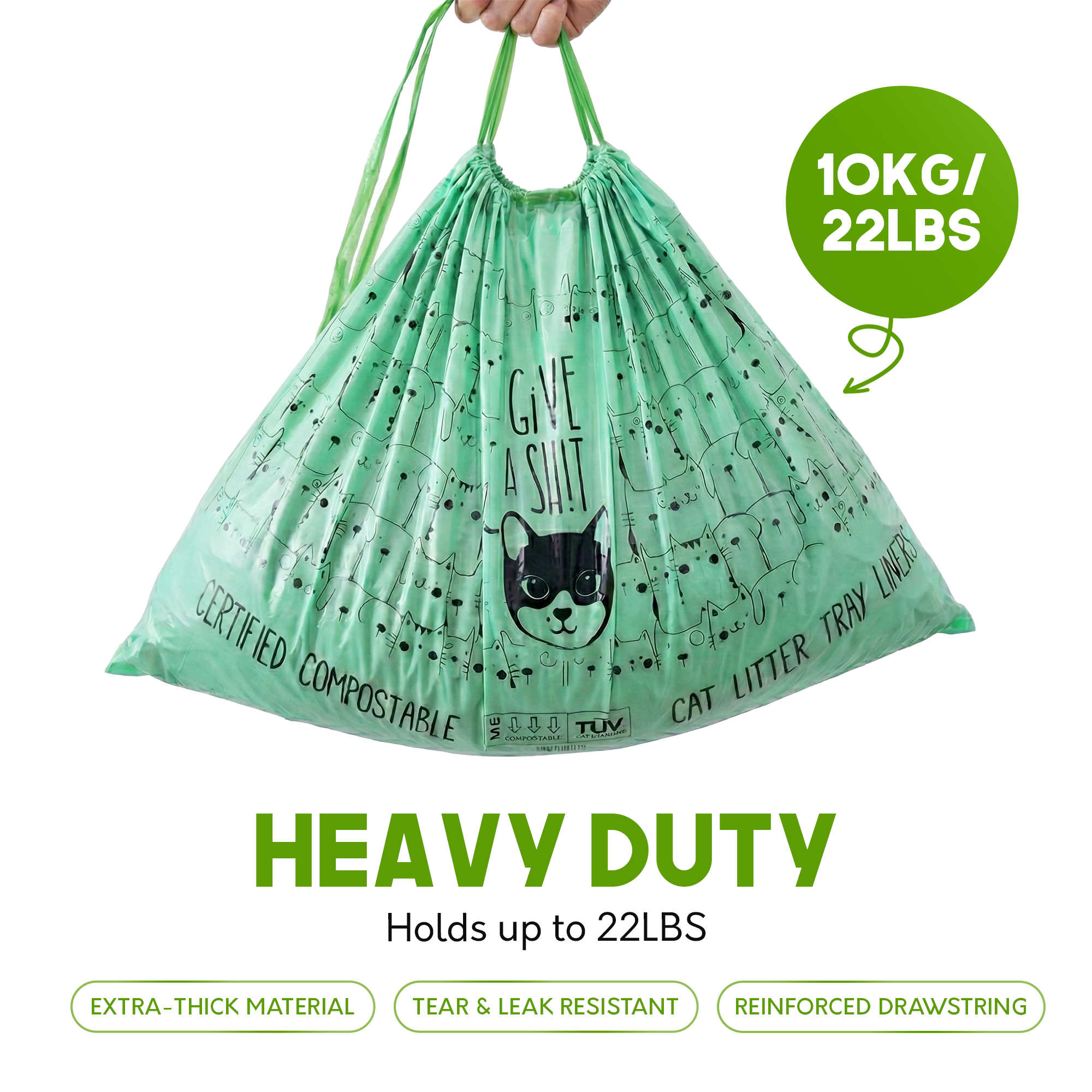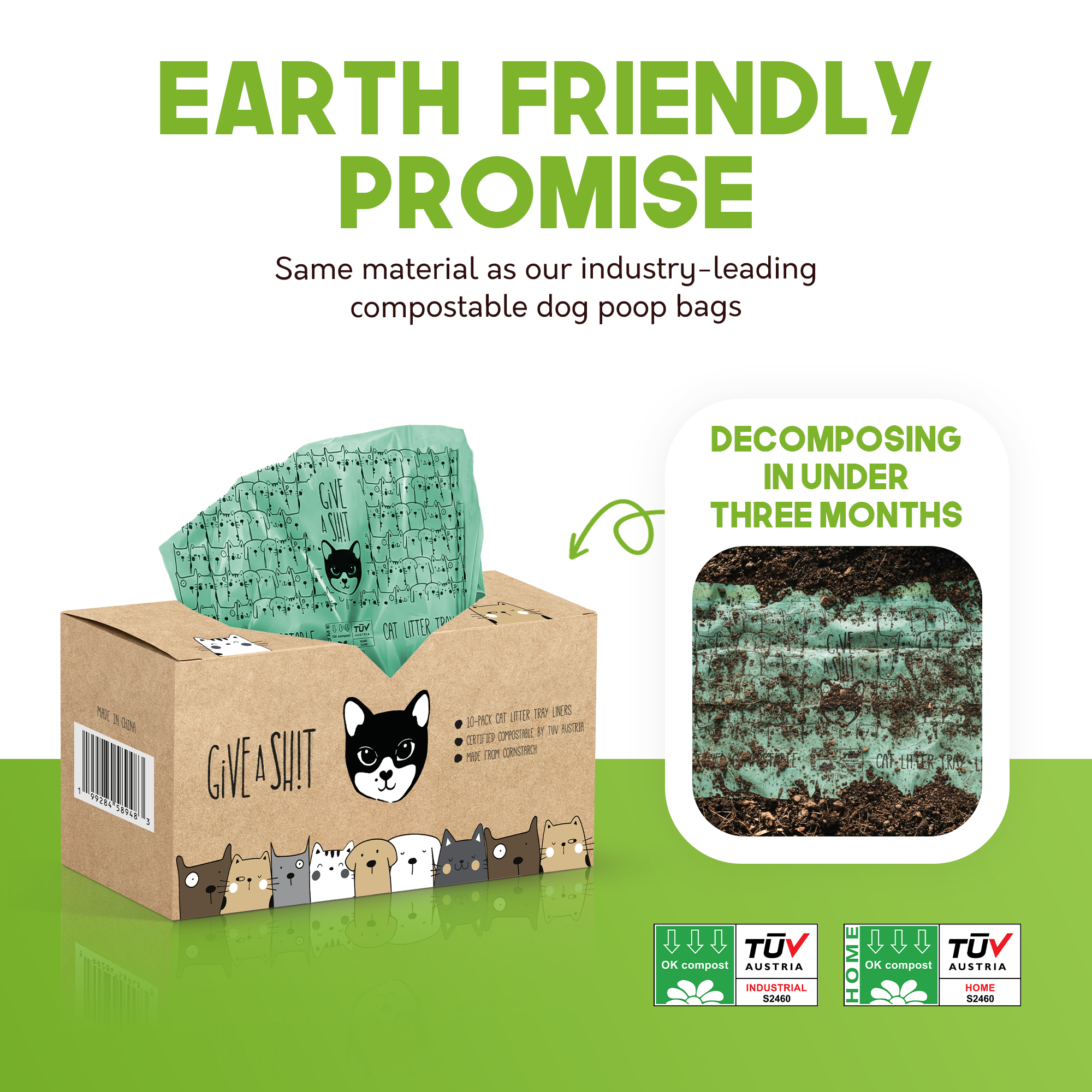 🌱 HOME COMPOSTABLE, TÜV AUSTRIA CERTIFIED - Certified OK Compost HOME, one of the world's most rigorous composting standards. Made from the same plant-based materials as our compostable dog poop bags. Your cat's mess doesn't have to become the planet's problem.