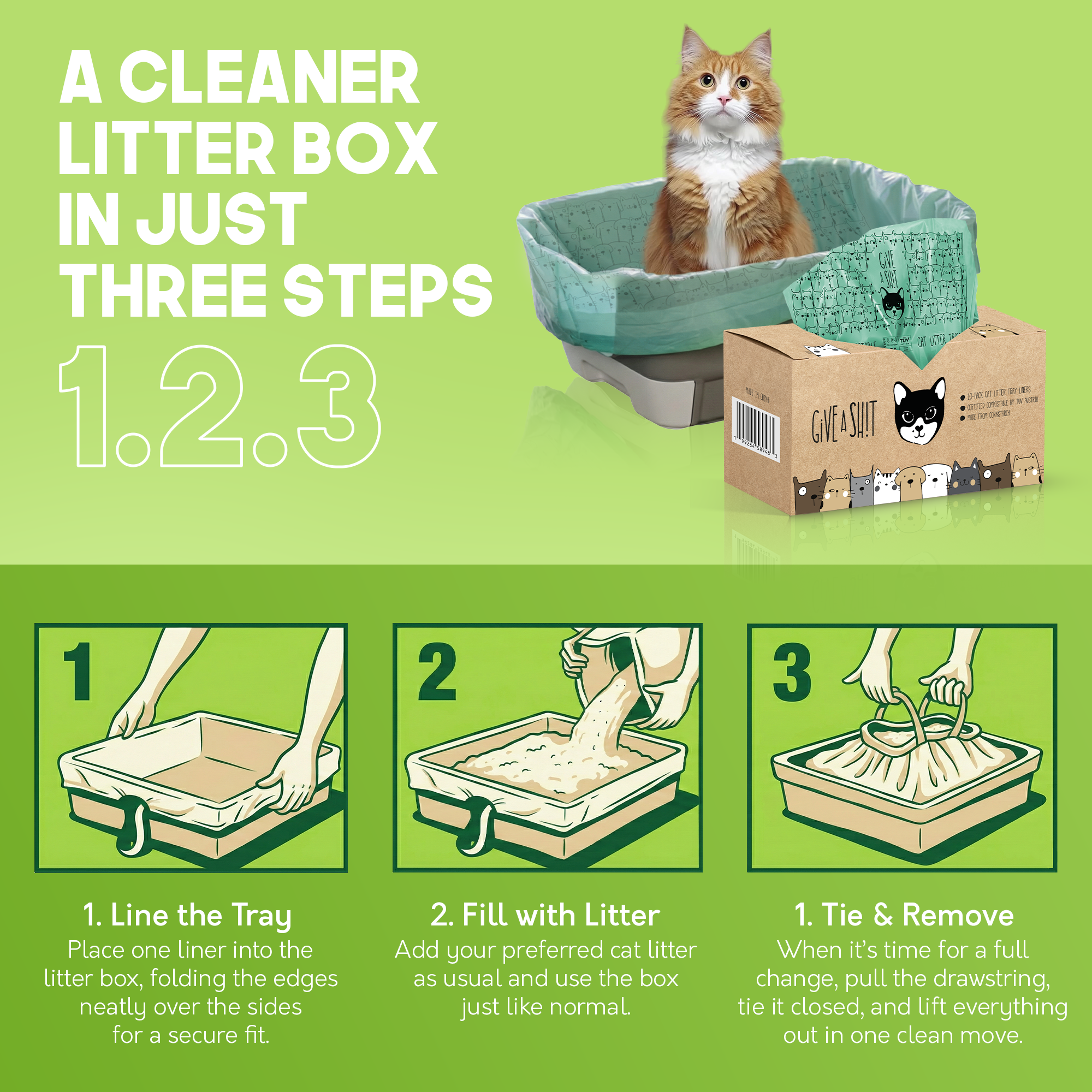 🐱 BUILT FOR REAL CATS IN REAL HOMES - The built-in drawstring closes tight before disposal, containing loose litter and odors on the way out. Faster changes, less mess, less gross. Multi-cat households, this one's for you.