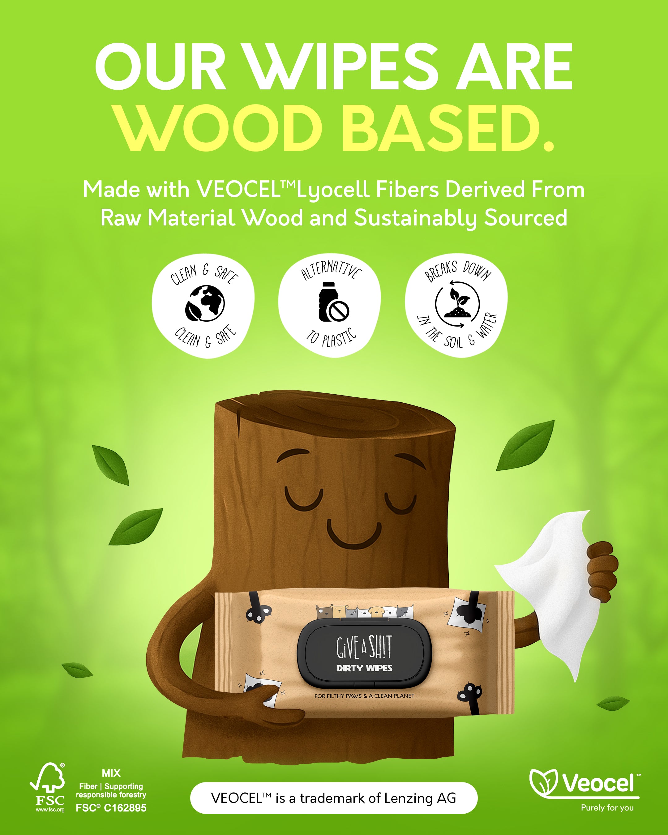 Gentle on skin, ruthless on grime. Perfect for paws, butts, faces, and mystery messes. Made from 100% VEOCEL™ Lyocell fibers – Derived from the natural material – wood.